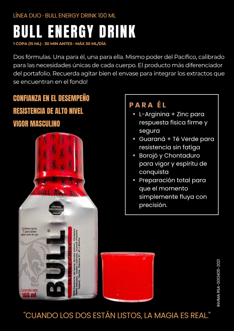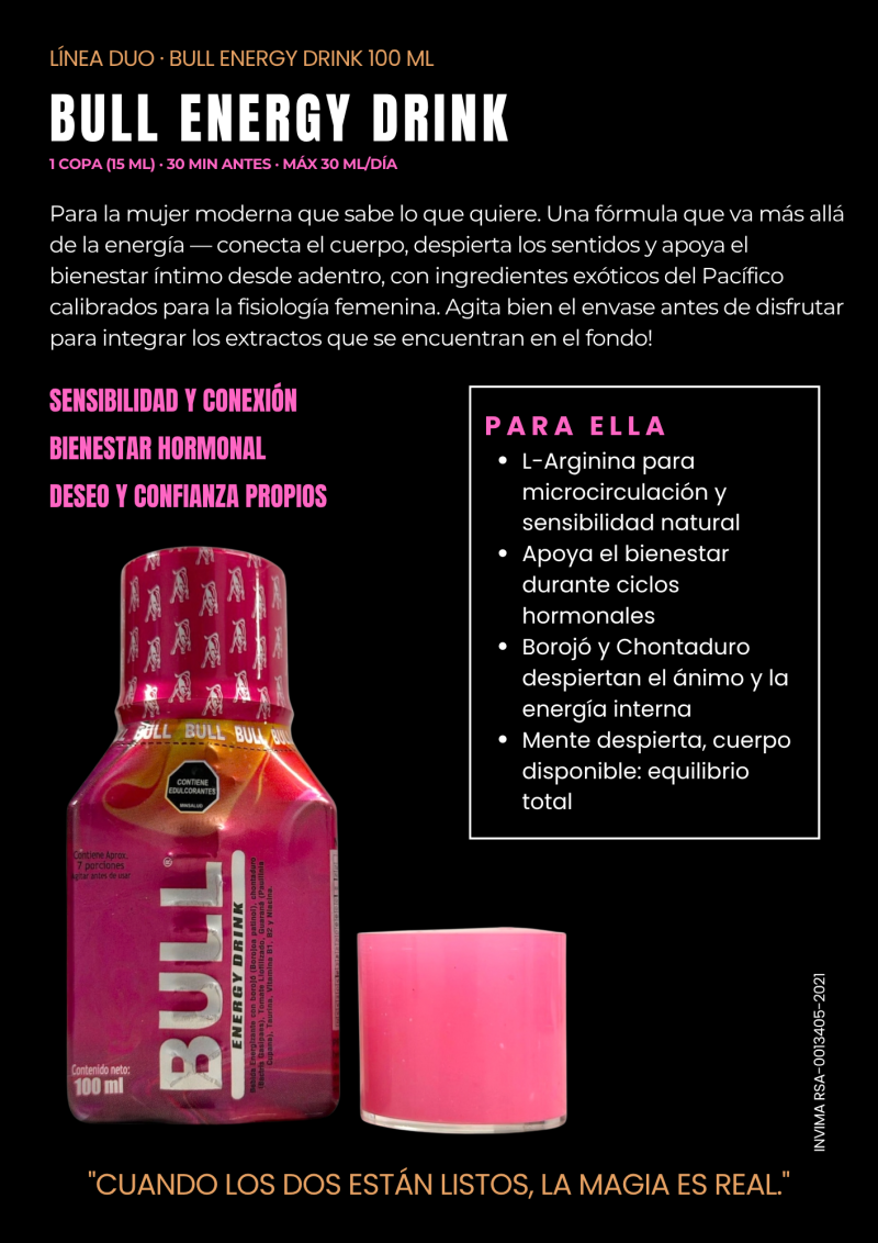 BULL BEBIDA LÍNEA DUO PARA EL Y PARA ELLA (2 BOTELLAS X 100 ML)